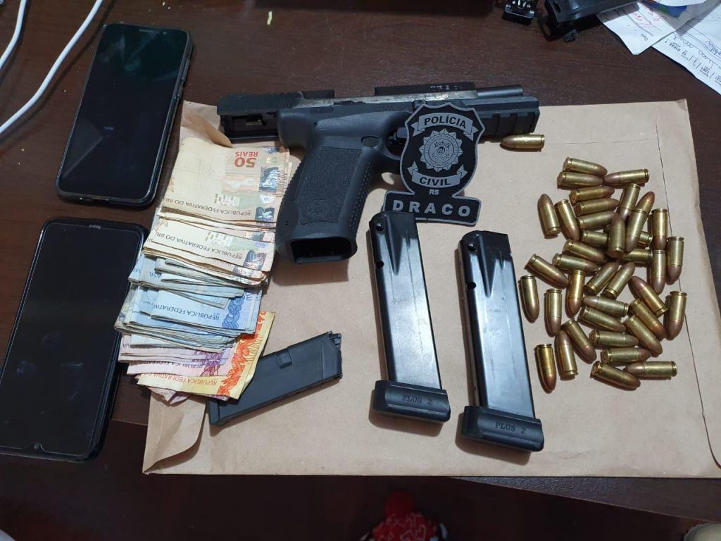 Nos municípios de São Leopoldo e Novo Hamburgo foram cumpridos 06 mandados de busca e apreensão e 02 mandados de prisão temporária nos bairros: Campina e Scharlau, em São Leopoldo e Lomba Grande e Santo Afonso em Novo Hamburgo. Na ação policial foram presos uma mulher de 29 anos e seu companheiro, também com 29 anos. Eles já possuíam antecedentes policiais por crimes de furto qualificado, roubo, receptação, porte de arma de fogo. Foi ainda preso um homem em flagrante por posse ilegal de arma de fogo, o qual era primo de um dos investigados.