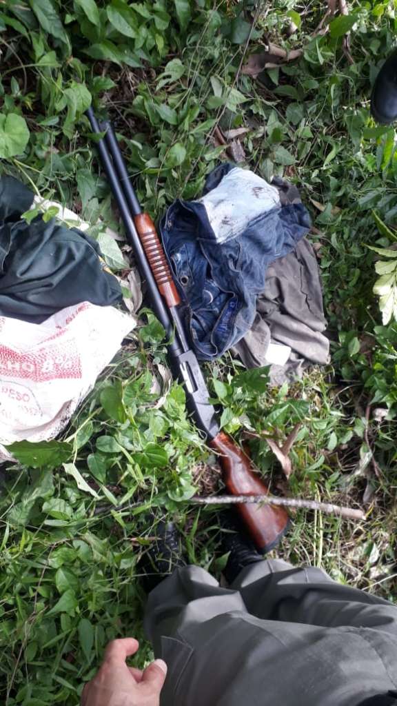 A Brigada Militar também localizou o esconderijo que os assaltantes presos usavam no interior do município. No local foram encontrados celulares, cobertores, boné e dois celulares.