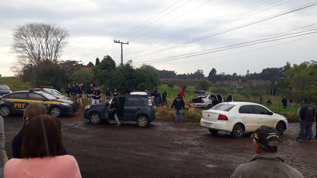 Uma operação em conjunto da Polícia Civil e da Polícia Rodoviária Federal, realizada na manhã desta terça-feira, 17, em Tio Hugo, prendeu três homens, deteve um menor de idade, recuperou dois carros roubados e apreendeu cerca de 200 quilos de drogas na BR 386 em Tio Hugo.