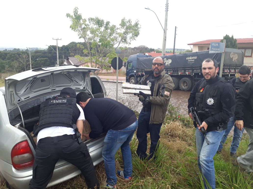 Três homens foram presos, dois caros roubados foram recuperados e cerca de 200 kg de drogas foram apreendidos. Os presos serão encaminhados para a delegacia de Não-Me -Toque.