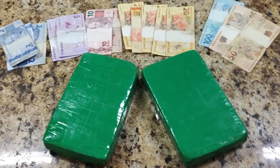 Durante a revista pessoal, foi encontrada a quantia de 340 reais, e na revista veicular, dentro de um saco preto de lixo, foram descobertos dois invólucros contendo 2,084 kg de uma substância com características semelhantes à cocaína. A droga estava acondicionada em um pó branco, enrolado em formato de tijolo com fitas verdes.