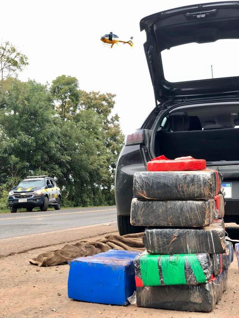 Na vistoria ao veículo, os policiais encontraram 100 quilos de maconha no porta-malas do carro. A mulher disse que pegou o carro com a droga em Medianeira/PR, mas não soube dizer o destino final do carregamento.