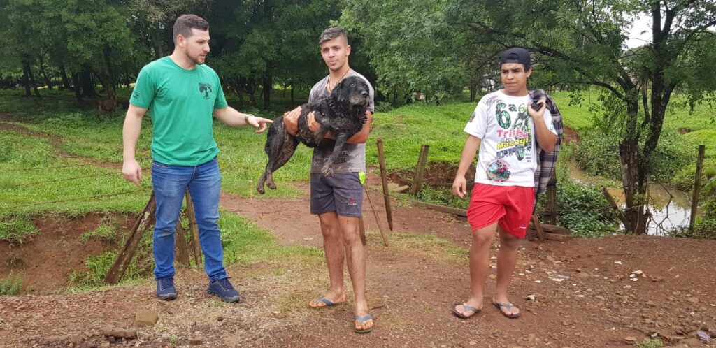 Uma cadela foi salva por populares na manhã desta terça-feira, no arroio Tigreiro, no Bairro Norte América. O animal de grande porte estava dentro d’água já faziam horas e acoava na tentativa de pedir socorro.