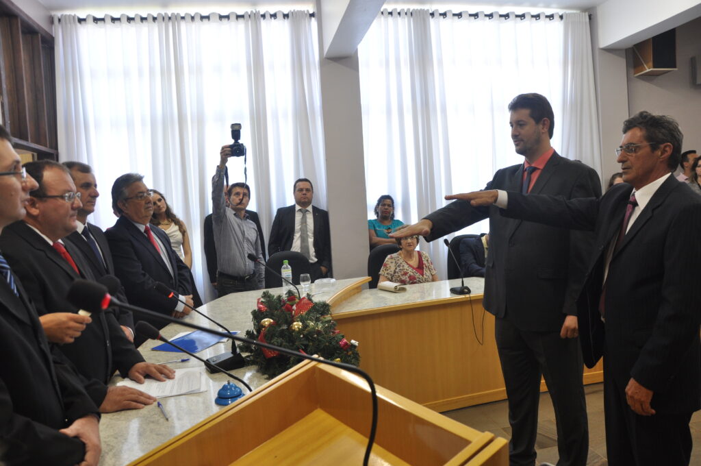 A posse dos vereadores foi presidida pela Vereadora Ana Voguel, por ser a de maior idade entre os eleitos. Após a posse dos parlamentares, foi realizada a eleição da nova Mesa Diretora. Sendo que o presidente eleito, Jadir de Oliveira assumiu a mesa e então conduziu a posse do prefeito e do vice.