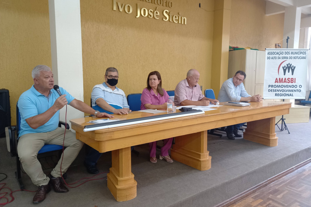Prefeitos e secretários dos municípios que compõem a AMASBI (Associação dos Municípios do Alto da Serra do Botucaraí) reuniram-se na tarde de segunda-feira, 07/03, no auditório Ivo Stein, em Soledade, para tratar de diversos assuntos de interesse regional.