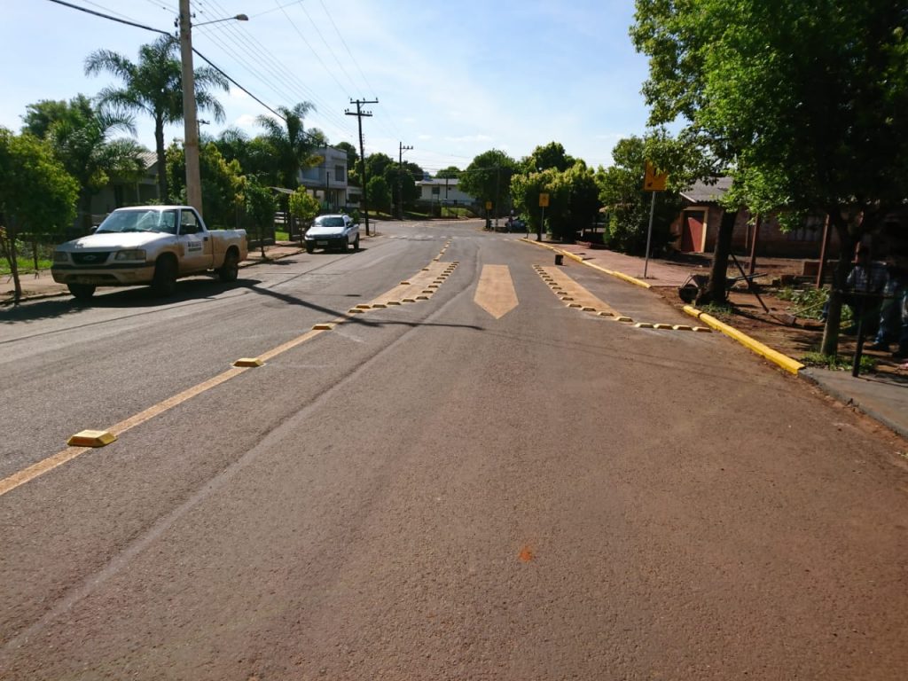 A Secretaria municipal de obras e trânsito realizou nesta sexta-feira, 19, a instalação da nova sinalização no entroncamento entre as ruas Rui Barbosa, Pedro Alvares Cabral e Pedro Bambini. A obra tem como objetivo melhor sinalizar o entroncamento e fazer com quem os motoristas diminuam a velocidade, consecutivamente diminuindo o número de registros de acidentes no local.