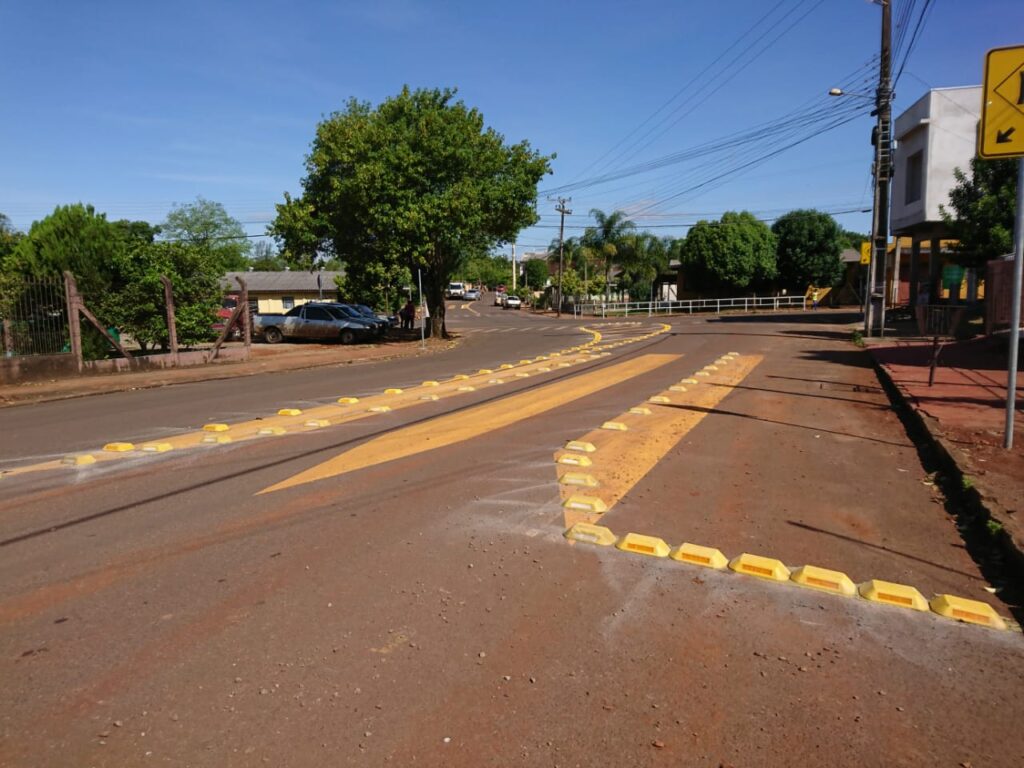 A Secretaria municipal de obras e trânsito realizou nesta sexta-feira, 19, a instalação da nova sinalização no entroncamento entre as ruas Rui Barbosa, Pedro Alvares Cabral e Pedro Bambini. A obra tem como objetivo melhor sinalizar o entroncamento e fazer com quem os motoristas diminuam a velocidade, consecutivamente diminuindo o número de registros de acidentes no local.