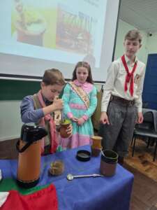 transmissão de costumes, tradições e história para os alunos, convidando a eles a participar do CTG, um espaço de formação moral e social para crianças e jovens.