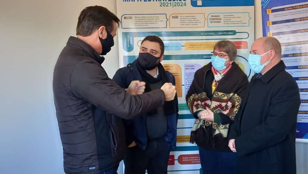 O presidente da Assembleia Legislativa do estado do Rio Grande do Sul, deputado Gabriel Souza (MDB) e o deputado Clair Kuhn (MDB), estiveram visitando o Hospital Notre Dame São Sebastião na manhã desta quarta-feira (21).