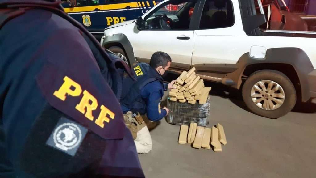No interior da caminhonete havia dois fardos de maconha, que totalizaram 71,8 quilos da droga.