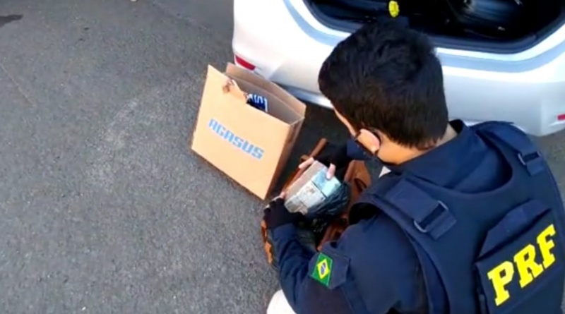 Durante ação de combate ao crime, os PRFs abordaram um Corolla com placas de São Paulo. Ao realizarem a vistoria no interior do veículo, os policiais verificaram que havia uma enorme quantidade de dinheiro dentro de uma bolsa e em algumas caixas.