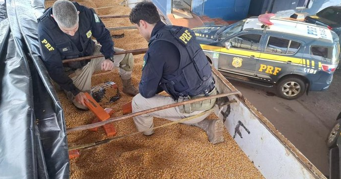 PRF apreende tonelada de maconha em carreta de milho na BR-386