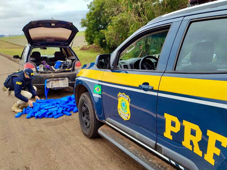 Policiais Rodoviários Federais realizavam operação de combate à criminalidade quando abordaram um Palio emplacado em Cascavel-PR que transitava na BR 386 em direção à capital. O veículo estava com dezenas de tabletes de maconha no porta-malas, pesando 116 kg.
