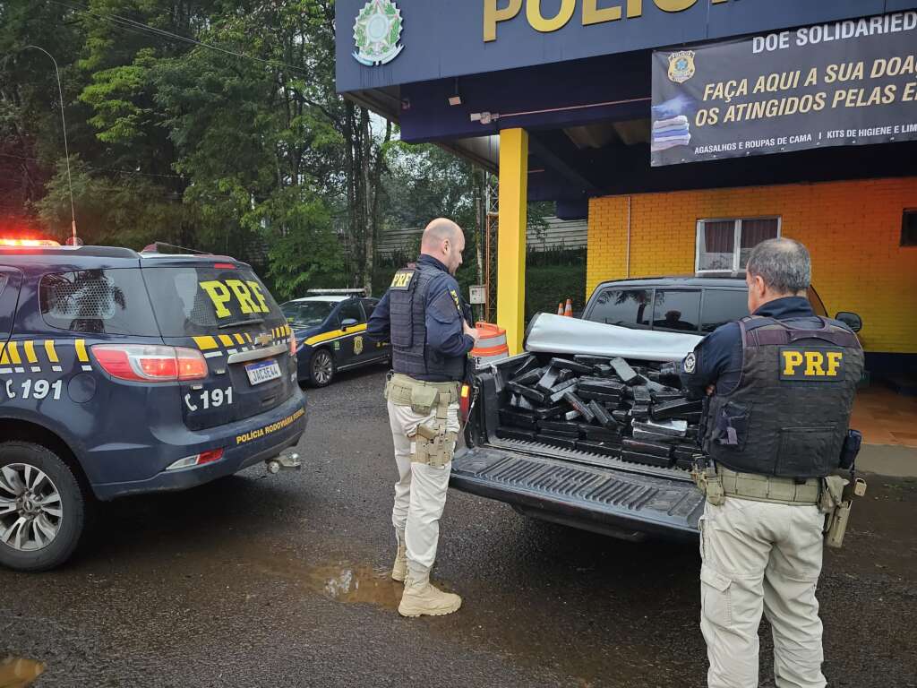 Durante a vistoria na caçamba da caminhonete, os policiais encontraram diversos tabletes de maconha, totalizando mais de 330 kg da substância. Ao verificar os sinais identificadores do veículo, os agentes constataram que se tratava de uma caminhonete furtada, portando placas falsas. A apreensão revelou que o veículo havia sido roubado no mês de agosto na cidade de São Leopoldo/RS. O proprietário foi notificado sobre a recuperação e expressou sua gratidão pela ação dos policiais.