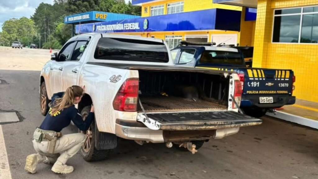 Durante uma fiscalização de rotina, os policiais abordaram uma caminhonete Toyota Hilux com placas de Sete Lagoas, em Minas Gerais. Ao realizarem consultas aos sistemas e uma vistoria detalhada, os agentes identificaram divergências nos sinais identificadores do veículo.