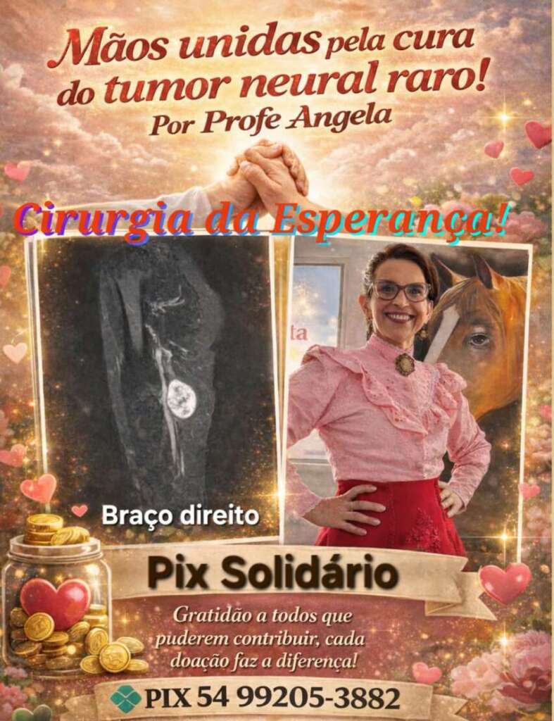 No dia 14 de janeiro deste ano o Clic Espumoso divulgou a batalha enfrentada pela professora Angela Maria Silva. Ela estava aguardando cirurgia para retirada de um tumor neural no braço direito.