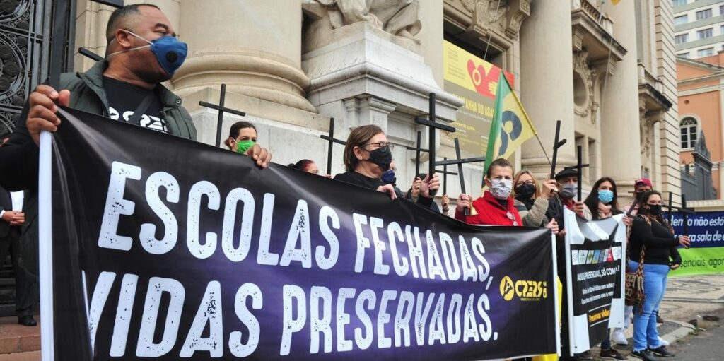 A presidente do Cpers, Helenir Aguiar Schürer, disse que a manifestação teve o objetivo de denunciar a falta de estrutura das escolas e de qualquer possibilidade de retorno às atividades escolares. “Não temos condições de retorno, porque as instituições de ensino não têm funcionários e capacidade estrutural para receber os estudantes”, ressaltou. Segundo Helenir, as escolas gaúchas não podem se transformadas em polos de contaminação do coronavírus. A presidente do Cpers ressaltou que sem a queda de casos da Covid-19 e uma vacina contra a doença, não é possível reabrir as escolas. “Não podemos permitir que as crianças sirvam de cobaias, inclusive, para ver se vai ter contaminação ou não”, afirmou. Segundo ela, muitas escolas não têm recursos humanos suficientes para cuidar da higienização e do controle dos alunos.
