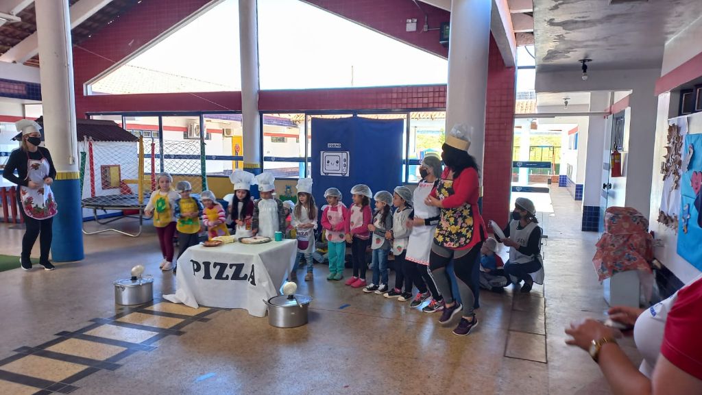 O primeiro educandário a demonstrar os trabalhos, foi a EMEI Gema Laner Ghisleni, com o tema: “Pizza da Geminha e o universo de possibilidades”.