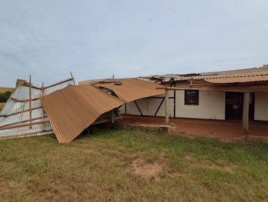 Redemoinho causa destelhamento em prédio público na Linha Guaiana, Lagoa dos Três Cantos
