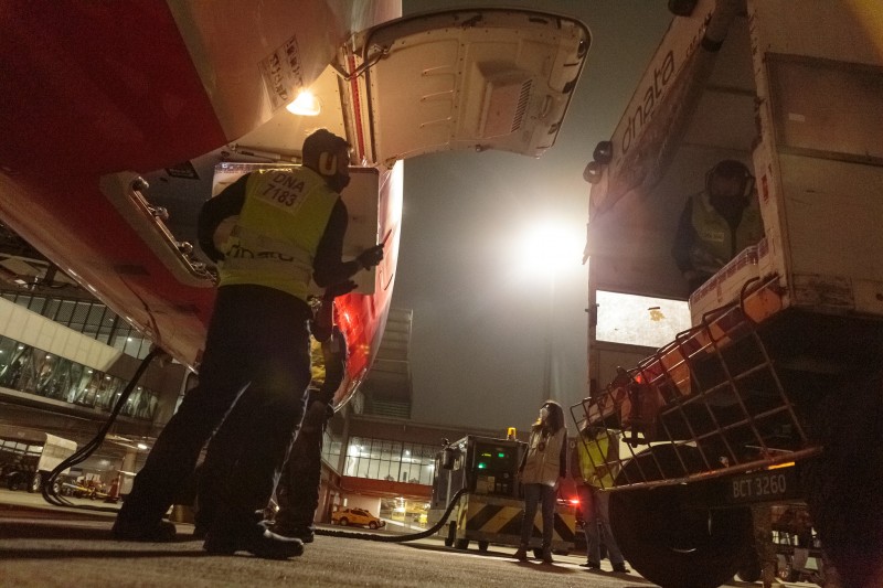 Em avião que pousou às 18h40 no aeroporto de Porto Alegre, chegaram caixas com 159.120 doses de Pfizer - Foto: Gustavo Mansur / Palácio Piratini