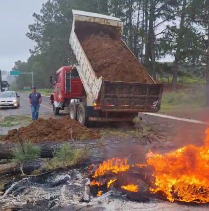 BR 386, km 158, em Almirante Tamandaré do Sul – Bloqueio total