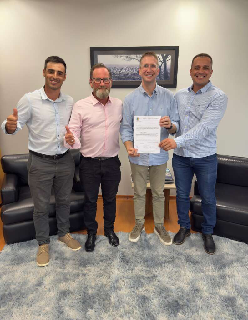 Na última quarta-feira, 25, o Secretário de Administração e Planejamento de Campos Borges, Dioni Junior Ribeiro, acompanhado dos vereadores da bancada do MDB Luan da Silva Pereira e Paulo Roberto Ritter, esteve no gabinete do Secretário Estadual de Desenvolvimento Social, Beto Fantinel.
