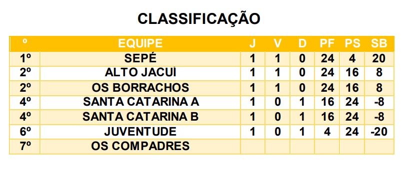 Sete equipes estão participando da edição 2025, são três partidas por rodada sendo que uma equipe folga.