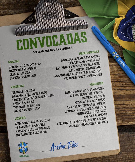 Das 30 atletas convocadas, nove conquistaram a prata olímpica em Paris no ano passado: as atacantes Adriana, Jheniffer, Kerolin e Ludmila; a meio-campista Ana Vitória; a lateral Yasmin; as zagueiras Antônia e Tarciane; e a goleira Lorena. Na lista de Arthur Elias, a maioria das atletas (16) atuam no exterior.