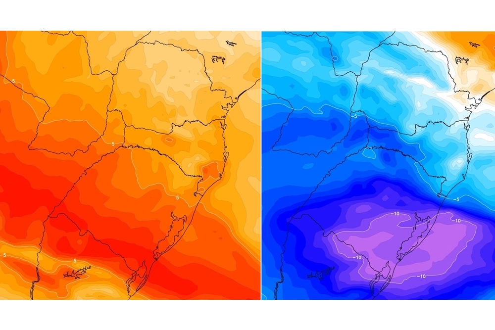 Depois da passagem da frente fria, a temperatura declinará com o ingresso de uma massa de ar frio entre sexta e sábado. A MetSul enfatiza que este incursão de ar frio não terá a intensidade da massa de ar polar do final de junho.