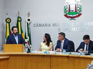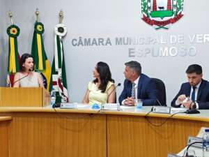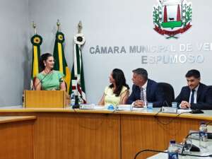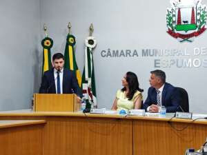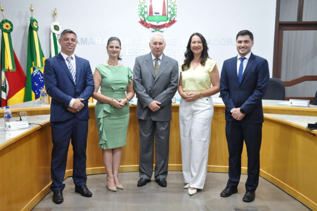 Na noite desta terça-feira, 27, a nova Mesa Diretora da Câmara Municipal de Vereadores de Espumoso foi empossada. A presidência será exercida por Denner Fernando Duarte Senhor (PL), com vice-presidência de Dayana Soares de Camargo (PDT), e como secretária geral Fabiana Dolci Otoni (Progressistas) e Eduardo Signor (União Brasil) como secretário Adjunto.