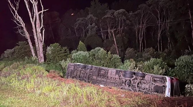 Sete pessoas morreram, entre elas uma criança de três anos, e 22 ficaram feridas depois de um ônibus de viagem tombar na BR-277 em Fernandes Pinheiro, na região central do Paraná, na madrugada desta terça-feira (31). De acordo com a Polícia Rodoviária Federal (PRF), o veículo saiu da pista.