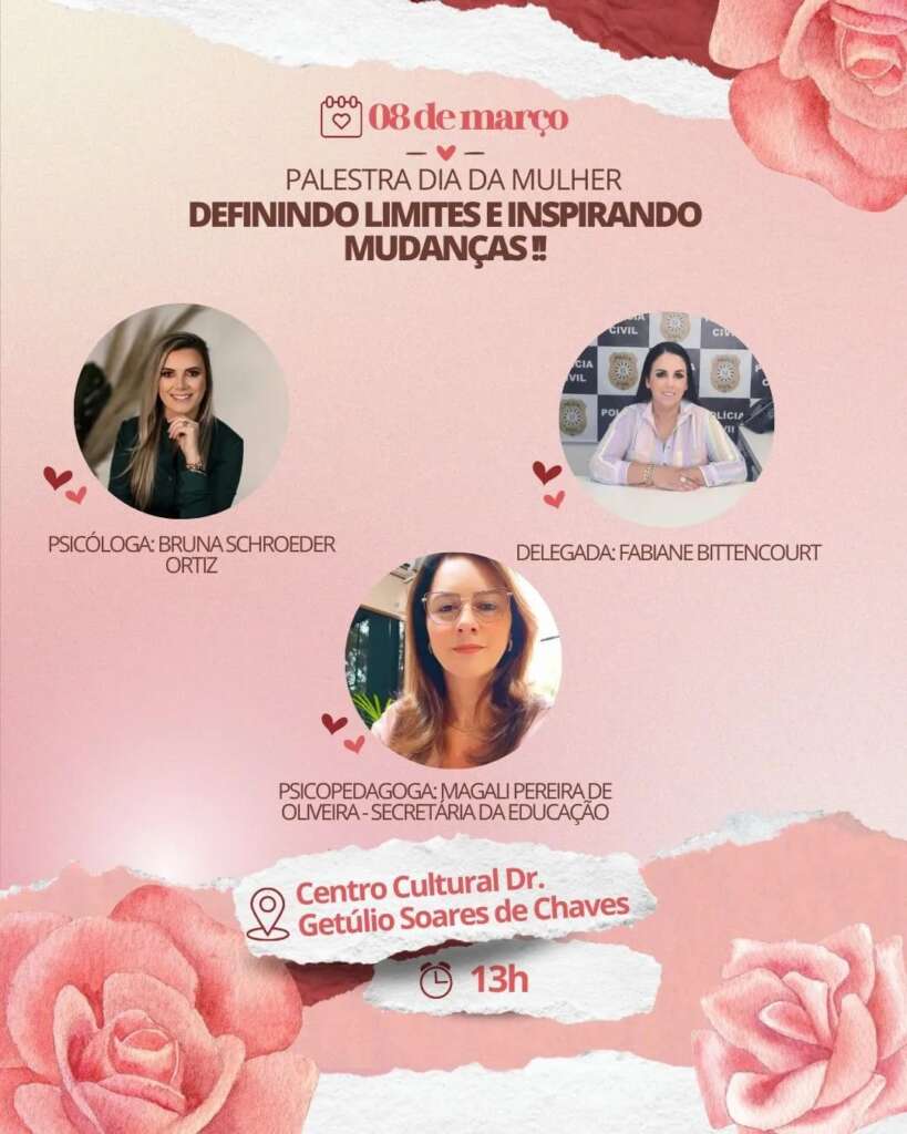 No painel, para falar sobre o tema “Definindo Limites e Inspirando Mudanças”, estarão a Psicóloga Bruna Schroeder Ortiz, a Delegada de Polícia Regional Fabiane Bittencourt e a Psicopedagoga Magali Pereira de Oliveira.