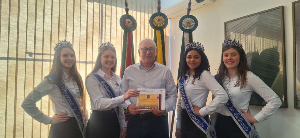 A corte de soberanas do município de Selbach esteve em visita ao prefeito Gerson Machado, para oficializar o convite à XVI Blumenfest.