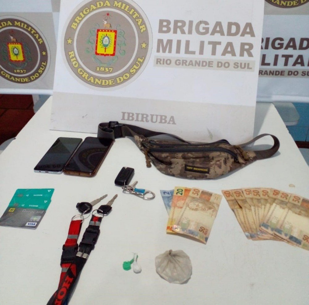 Durante a abordagem, os policiais constataram que a numeração da motocicleta estava em desacordo, sendo que na revista pessoal, foi localizado duas buchas de substância semelhante a cocaína e o valor de R$ 72,00 em moeda corrente.
