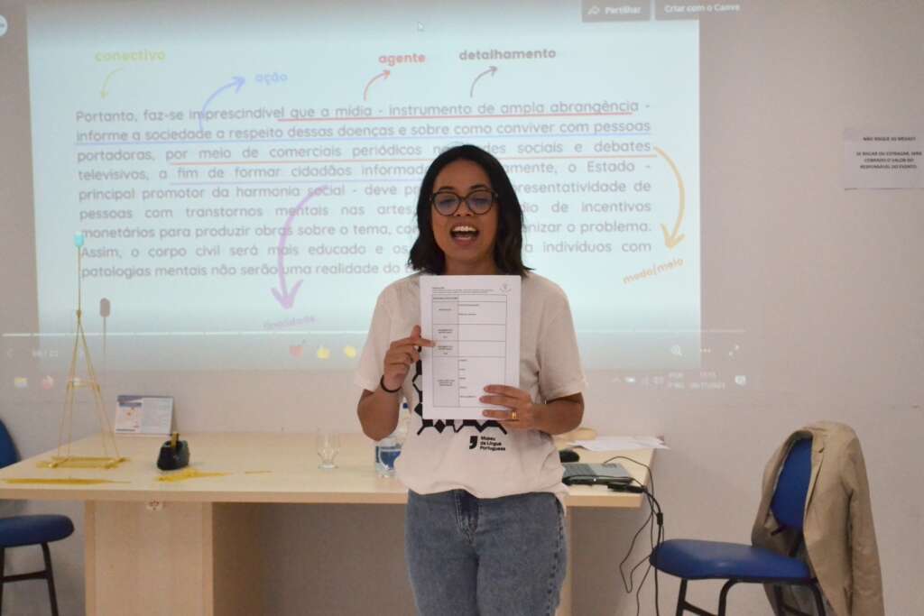 Na manhã desta quarta-feira, 08 de novembro, o Centro de Eventos de Tapera foi palco de uma animada oficina intitulada “Rota da Redação Nota 1.000”, ministrada pela renomada Professora Lissara Alves. O evento, parte integrante da 3ª edição da Feira do Livro local, contou com a participação entusiasmada de estudantes do 3º ano do Ensino Médio, ávidos por aprimorar suas habilidades na arte da escrita.