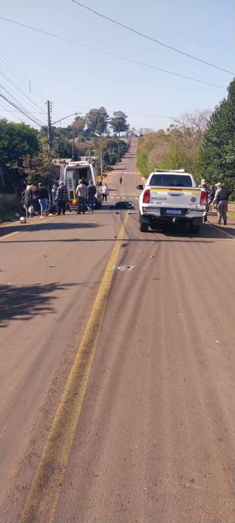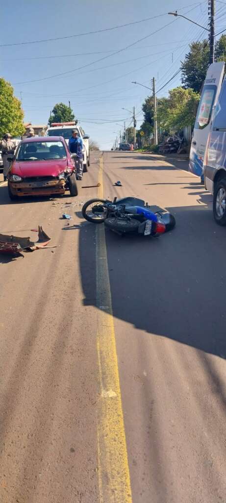 Um acidente envolvendo um carro e uma moto foi registrado na manhã desta sexta-feira na Vila Brasília, em Tapera. A colisão deixou o piloto da moto ferido, que foi encaminhado ao hospital.