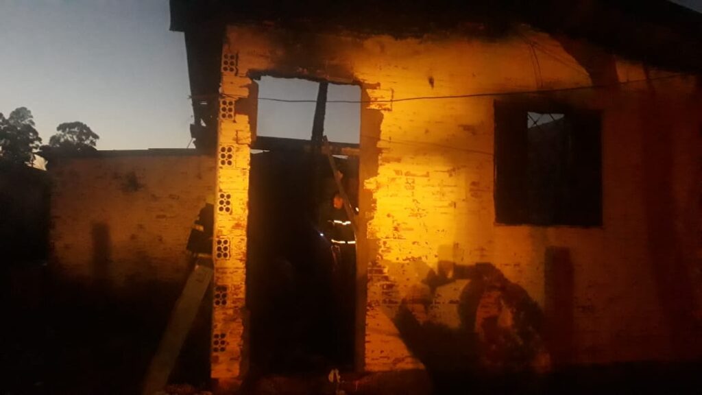 O Corpo de Bombeiros Misto de Tapera (RS), que ainda se encontra no Loteamento Seibel, fazendo o trabalho de rescaldo da casa de alvenaria que incendiou nesta madrugada e que foi consumida pelo fogo, acabou de encontrar o copo de uma pessoa adulta. O mesmo irá para necropsia para ser identificado.