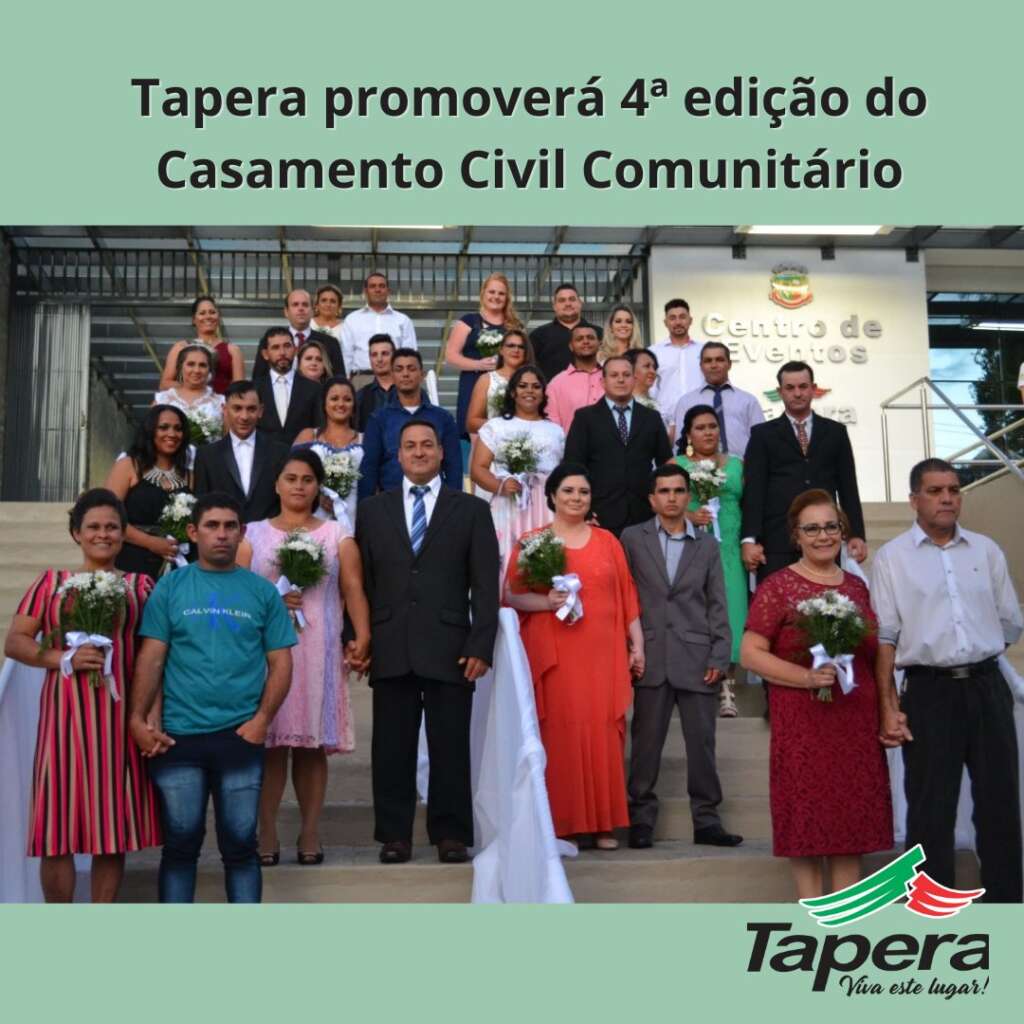 A Secretaria Municipal de Assistência Social e Cidadania de Tapera, promoverá a 4ª edição do Casamento Civil Comunitário. Os 16 casais aptos para o casamento receberão também uma bênção ecumênica.