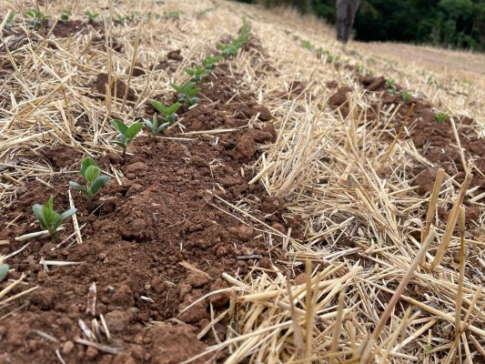 O tempo favorável tem contribuído para o avanço do plantio da soja no Estado, que alcança 29% da intenção de 6,32 milhões de hectares, estando em germinação e desenvolvimento vegetativo.