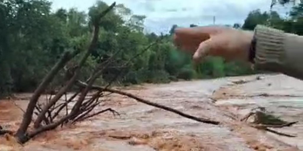 Na zona rural, a cabeceira de uma das pontes da cidade foi levada pela força da água. A situação foi registrada por moradores em vídeos que mostram a gravidade dos danos.