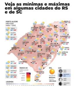 Nesta terça-feira, o calor será extremo. Mais da metade dos quase 500 municípios gaúchos devem ter máximas perto, ao redor e acima dos 40ºC. Mesmo o litoral, onde calor muito intenso é pouco frequente pelo efeito do mar, terá dia escaldante.