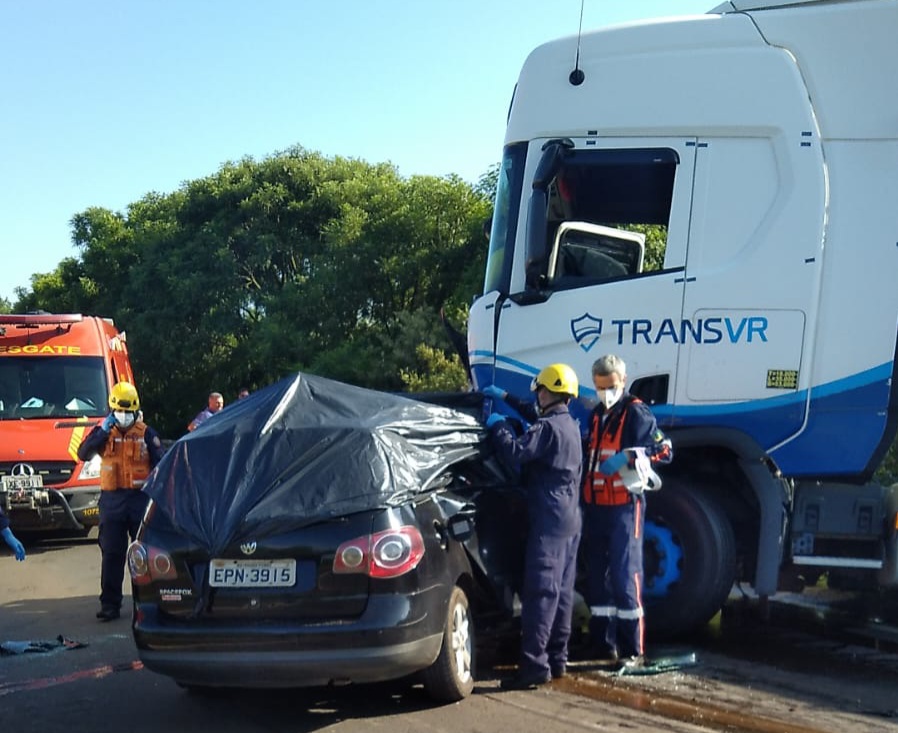 Grave acidente entre carro e caminhão deixa quatro mortos na Perimetral em Passo Fundo