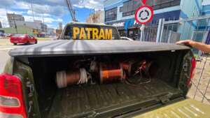 Durante a ação, os policiais apreenderam aproximadamente 100 kg de fios de cobre, que já estavam separados e prontos para transporte, além das ferramentas utilizadas para desmontar os equipamentos e retirar o cobre.
