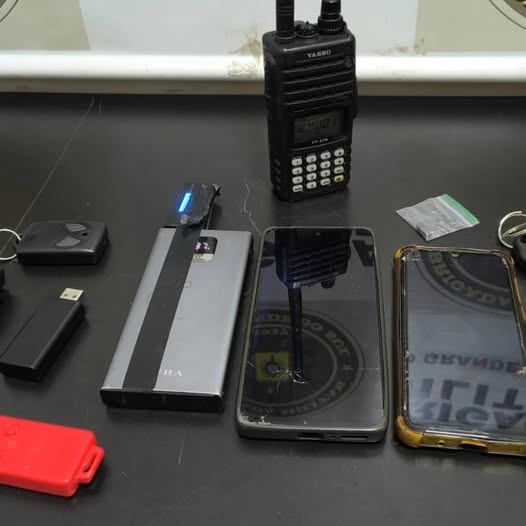 Com o trio, os policiais apreenderam diversos equipamentos utilizados em furtos de veículos, incluindo um rádio HT na frequência da BM, um aparelho com dois pen-drives bloqueador de sinal, um ímã utilizado para desbloqueio de portas, dois controles diversos, um aparelho para dar partida em carros e dois celulares.
