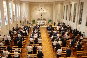 Outro momento significativo foi a entrega da vela pela coreana Irmã Marie So-Wha, símbolo da liderança confiada e do compromisso público assumido pela nova Superiora diante da comunidade congregacional. Em sinal de unidade e corresponsabilidade, cerca de 180 religiosas participaram do ato, manifestando apoio e acolhida ao novo Governo Provincial.