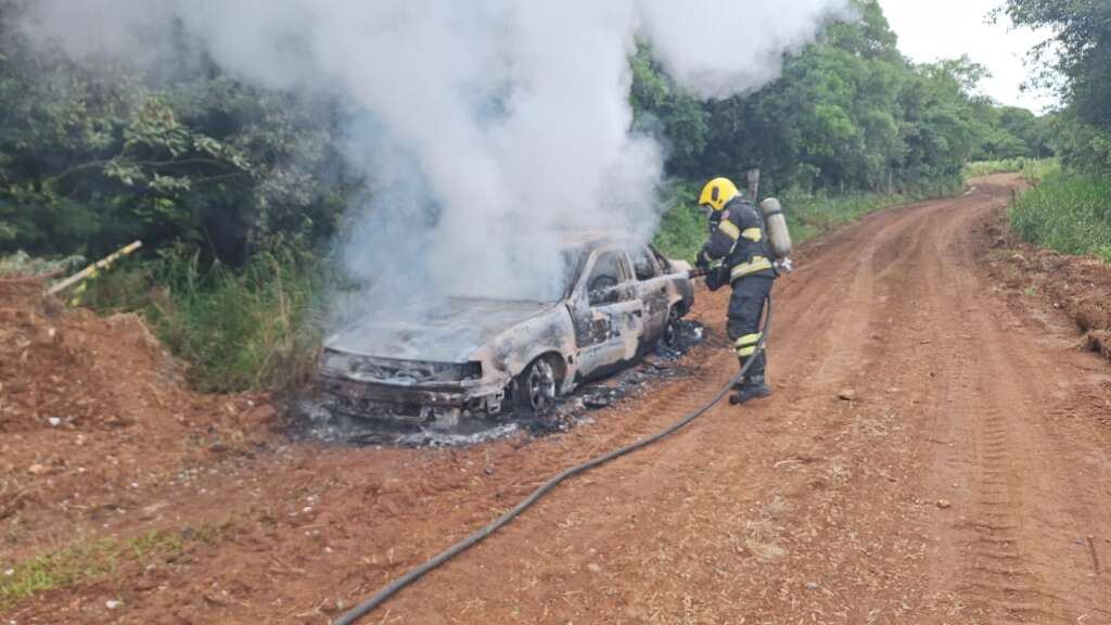 Um veículo foi consumido pelas chamas na manhã desta sexta-feira, 29/11, na comunidade São Lucas, no interior de Soledade.