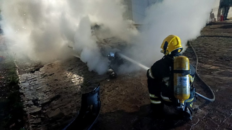 Um veículo incendiou no início da noite desta segunda-feira (18) no Bairro Ipiranga, em Soledade.