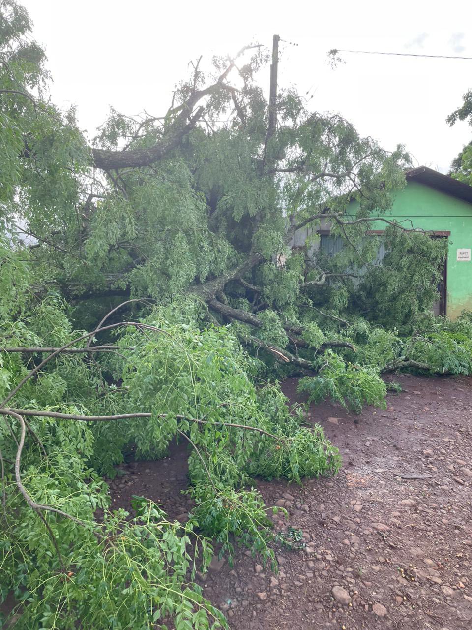 Um vendaval registrado na tarde de domingo, por volta das 17h, provocou estragos em uma propriedade rural na localidade de Santo Antônio do Triunfo, interior de Ibirubá. O episódio, descrito pelos moradores como um pequeno “tornado”, resultou na queda de dois cinamomos de grande porte e danos estruturais em um galpão pertencente às famílias de José Giacomolli e Jairo Giacomolli.