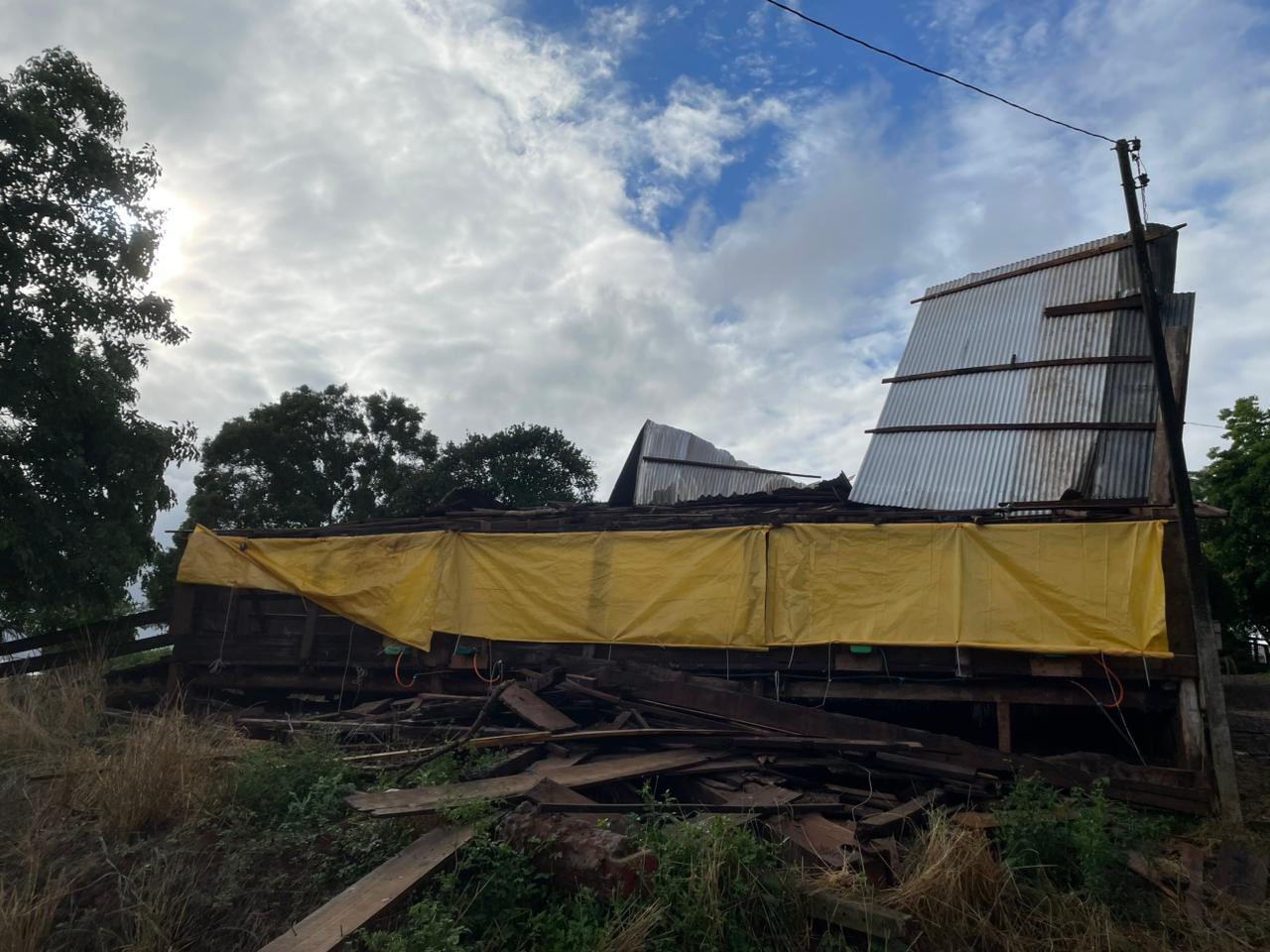 Família relata momento de susto; galpão foi atingido e telhas foram arremessadas, mas casas próximas não sofreram danos