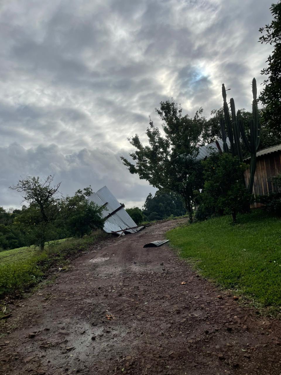 Apesar da queda das árvores e dos danos ao galpão, as casas da propriedade — localizadas a cerca de 30 metros do ponto atingido — não foram afetadas. O galpão tem seguro. Os animais ficaram expostos após o destelhamento, mas não houve feridos.